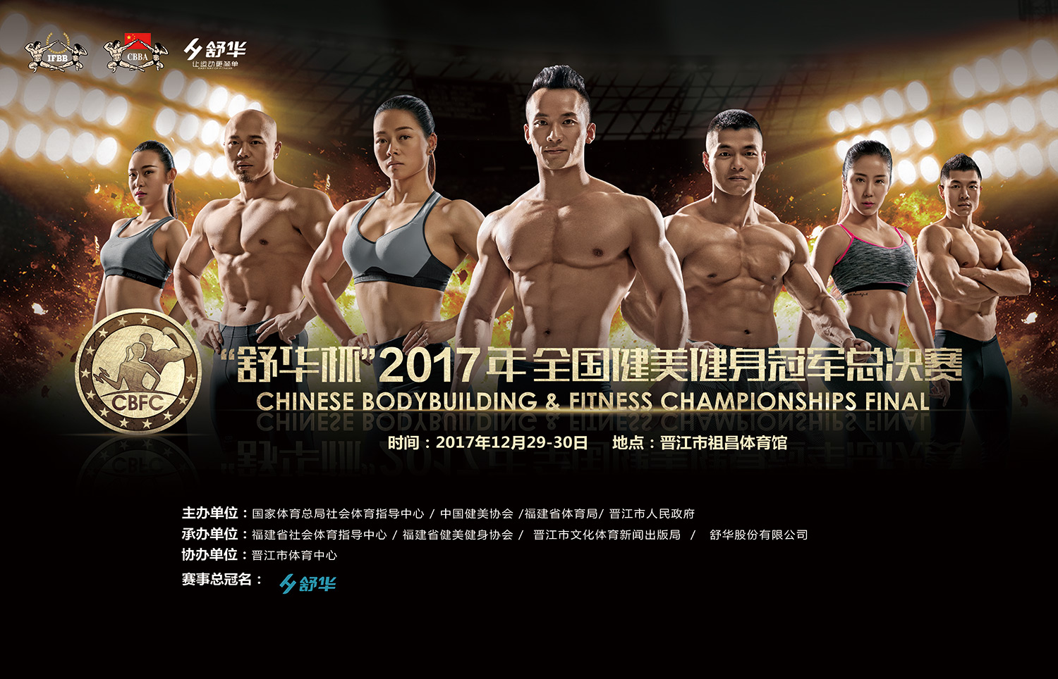 近日,中國健美協會官網正式發布《關于印發2017年全國健美健身冠軍總決賽競賽規程的通知》:由國家體育總局社會體育指導中心、中國健美協會、福建省體育局、晉江市人民政府聯合主辦,福建省社會體育指導中心、福建省健美健身協會、晉江市文化體育新聞出版局、舒華股份有限公司聯合承辦,晉江市體育中心協辦的“舒華杯”2017年全國健美健身冠軍總決賽(簡稱“冠軍總決賽”),將于12月29日至30日在福建晉江舉辦。