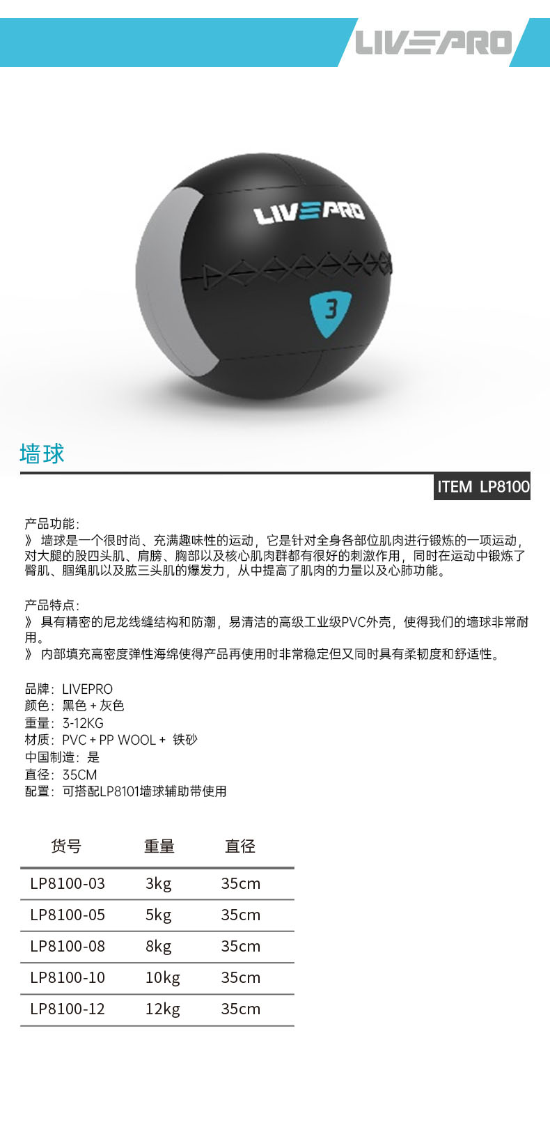 力珀/Livepro 墻球 LP8100